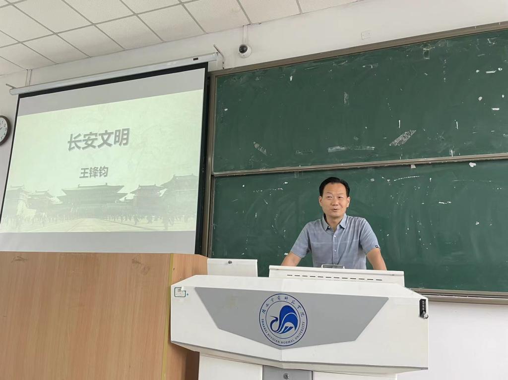 6月16日下午,bat365官网登录入口邀请半坡博物馆副院长王锋钧,在一教B2阶梯教室,以《长安文明》为主题做了一场专题讲座。王锋钧,现任半坡博物馆副院长、研究馆员。长期从事文化遗产管理与保护和西安地方史志研究。在海内外文博类专业期刊和《人民日报》《光明日报》发表学术论文43篇,编著《长安文明》、《中国文物小百科》等18部图书。