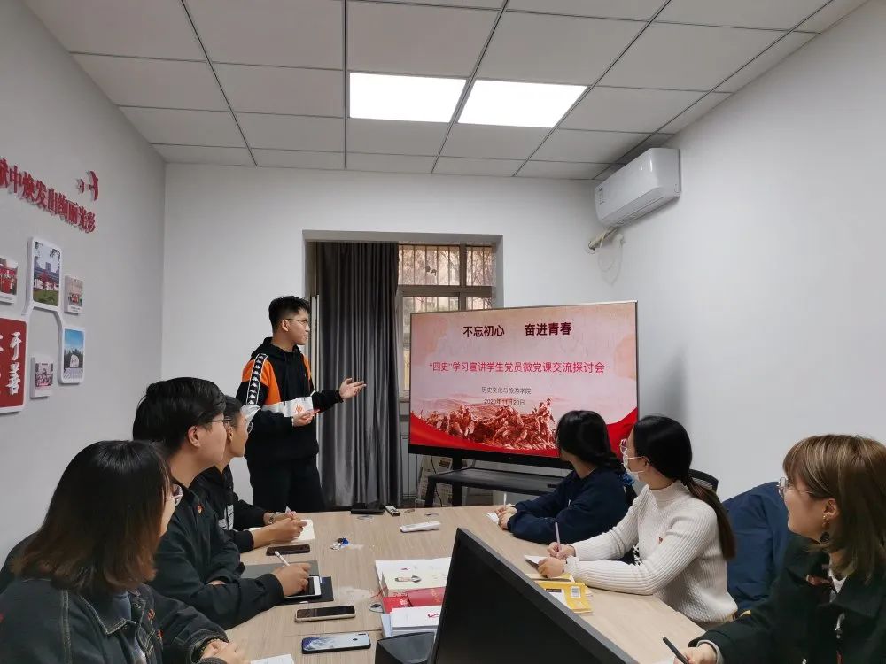 随后,学生党员们先后就准备的丰富选题,进行了生动的微党课宣讲,之后围绕“四史”的学习进行了热烈的讨论和交流。大家纷纷表示,一代又一代中国共产党人“不忘初心、牢记使命”,进行了一系列艰苦卓绝的斗争,为中国人民谋幸福,为中华民族谋复兴。在中国特色社会主义进入新时代后,经济发展突飞猛进,人民生活水平不断提高,综合国力显著提升,百姓的民族自尊心和自豪感日益增强。作为党员,更要进一步牢固树立“四个意识”、坚定“四个自信”,坚决做到“两个维护”,为实现中华民族伟大复兴的中国梦贡献自己的力量。作为新时代的学生党员,我们更应该努力学习“四史”,将深刻的心得体会积极分享出去,讲好中国故事!