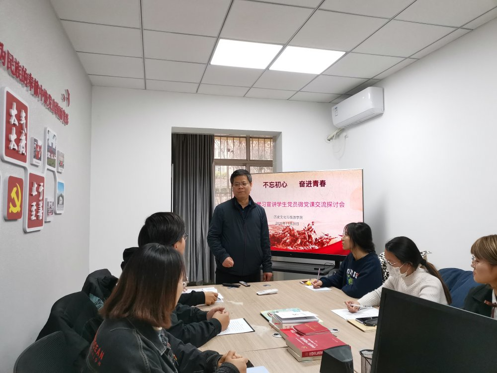 2020年11月20日,bat365官网登录入口党总支组织学生党员在5号公寓楼党员工作站,通过微党课宣讲和交流心得体会相结合的形式,召开了“四史”学习教育学生党员微党课宣讲和交流研讨会。学院党总支书记童广运、副书记景艳到场参会指导,与学生党员们进行亲切交流研讨,并做了主题党课学习。