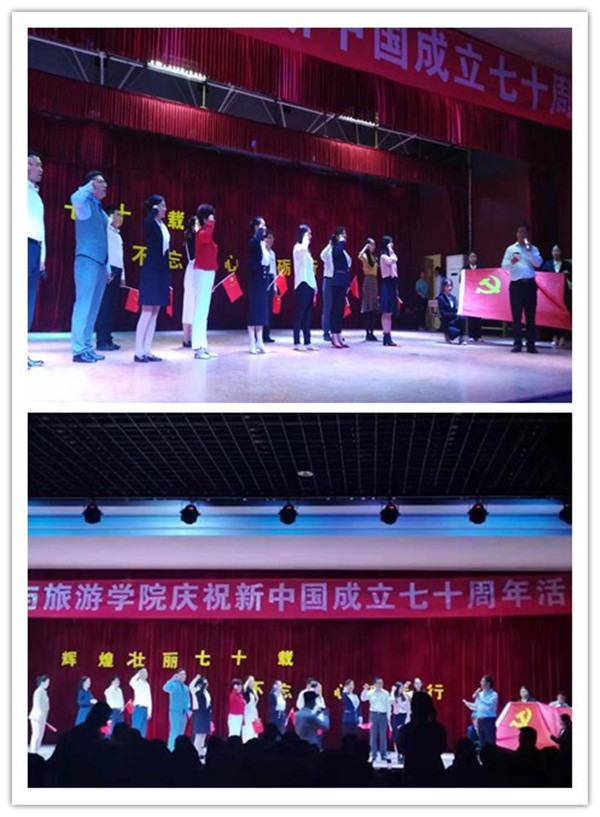 七十年风雨兼程,谱写了豪情壮志的精神赞歌,七十年砥砺前行,描绘出新时代的最美画卷。在伟大祖国70华诞即将来临之际,在全校上下开展“不忘初心、牢记使命”主题教育之时,为把学习贯彻习近平新时代中国特色社会主义思想落实到立德树人,坚持正确的育人导向和攻坚克难,推动顺利通过合格评估的行动实践中,以良好的工作成效迎接新中国成立70周年,9月25日晚,bat365官网登录入口在校学生活动中心举办了庆祝新中国成立70周年主题党日活动,学院党政班子与全体师生400余人欢聚一堂,带着满腔激情与敬意,共同庆祝新中国七十华诞。