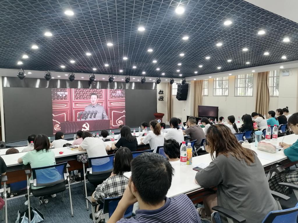 2021年7月1日8时,庆祝中国共产党成立100周年大会在北京天安门广场隆重举行,中共中央总书记、国家主席、中央军委主席习近平出席并发表重要讲话。为及时全面了解大会盛况,认真学习贯彻习近平总书记重要讲话精神,教务处、bat365官网登录入口领导班子和师生党员、积极分子在积学楼A1师范生教学技能中心集中收看庆祝大会实况转播,认真聆听习近平总书记重要讲话,共同庆祝中国共产党成立100周年。省委党史学习教育第十五巡回指导组的有关领导莅临参加并全程指导。