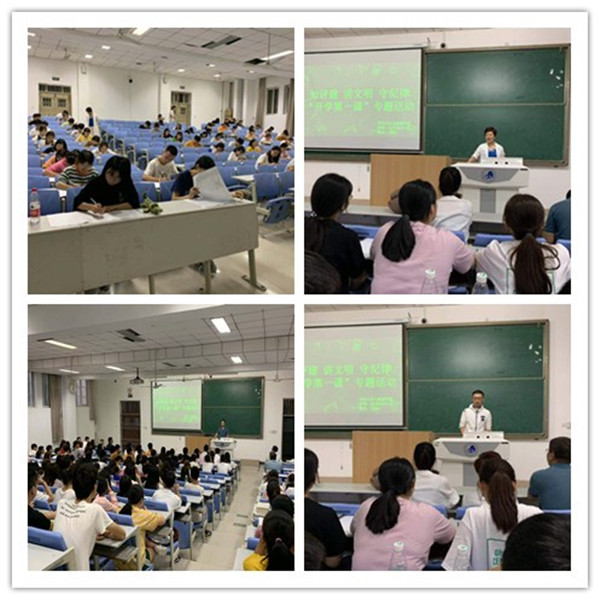 会议由专职辅导员任柏阳主持,他向学生说明这次“开学第一课”活动是根据学校部署和学院安排,是推动学生快速进入学习状态的动员课、教育培训迎评促建的宣讲课、加强道德修养和文明行为建设的指导课,希望同学们认真听讲并加以领会。