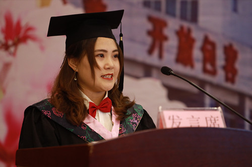 “天戴其苍,地履其黄;纵有千古,横有八荒,前途似海,来日方长。美哉我少年中国,与天不老;壮哉我中国少年,与国无疆!”这是梁启超先生在1900年为唤醒中国青年所作的《中国少年说》。119年后,我们毕业的今天,我想与在座的所有同学一起共勉。让我们带着那份对社会的责任感,努力成为一名优秀的教师,为国家的教育事业做出贡献;让我们发扬历史文化旅游学院多元化人才培养的精神,在社会的各行各业都尽情施展我们的才华。还记得李岩老师讲过我们在工作时要做到多一点创新,少一点守旧。多一点耐心,少一点急躁。多一点付出,少一点计较。在未来的工作中我们定会铭记。