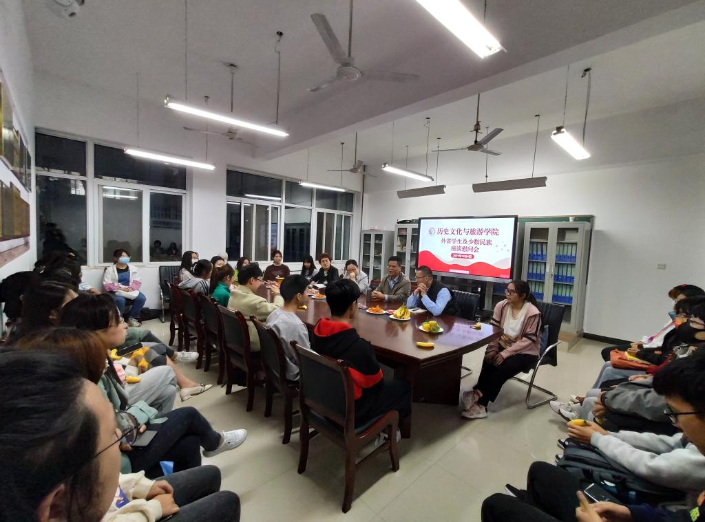 国庆节期间,为庆祝新中国成立72周年,了解学生思想、学习、生活方面的动态,促进少数民族同学之间的交流融合,bat365官网登录入口于10月4日晚在1教B202会议室召开了以“爱国情·强国志·报国行”为主题的外省籍及少数民族学生座谈慰问会。学院党委书记童广运,副书记景艳,学生党支部书记、学工办主任王黎,2021级辅导员任柏阳及2020级、2021级外省籍和少数民族同学共计30余人参加座谈会。座谈会由学院党委副书记景艳主持。