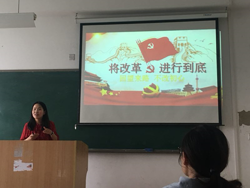 杨倩同学毕业后,一直牵挂母校,关注学弟学妹们的发展。近期闻悉2015级历史专业本科学生即将奔赴云南师大,参加第六届全国历史学本科生教学技能大赛。应老师们的邀请,杨倩同学返校为同学们展示《将改革进行到底》的示范课,同时她还无保留的将自己的参赛经验和教学心得与参赛选手分享,为选手们备战争优鼓劲加力,为我系学生努力学习专业知识与教学技能做了良好的示范榜样。