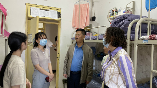9月15日上午,学院领导、新生辅导员一起走访了新生宿舍,对他们的到来表示热烈的欢迎,同时对新生报道入住等情况进行了详细询问,尤其是对外省学生和少数民族学生的家庭情况做了交谈了解,给新生们带去了学院的慰问与关怀,勉励他们尽快熟悉校园新环境,适应大学生活,学会独立和自我管理,并叮嘱同学们要加强自我防护,积极配合学校的疫情防控举措。