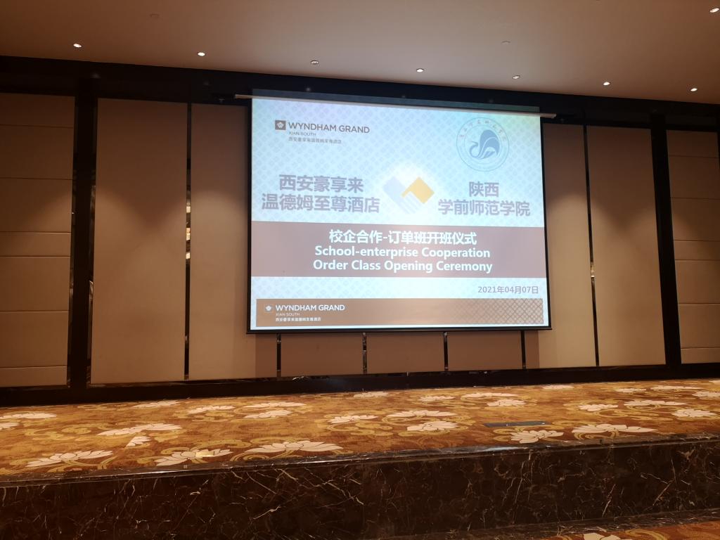 4月7日下午,bat365官网登录入口于西安豪享来温德姆至尊酒店举办了“校企合作—订单班开班仪式”。bat365官网登录入口副院长杜红艳、西安豪享来温德姆至尊酒店总经理Frank、旅游教研室全体教师以及酒店方各部门负责人出席了开班仪式。