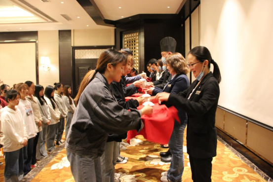 2018级旅游管理订单班学生刘思柔同学以管培生代表的身份结合自己的生产实习经历,与大家分享了在酒店工作中学习成长的感悟和思考。随后,2019级、2020级旅游管理订单班的34名同学进行了拜师仪式,标志着2021年订单班正式成立。