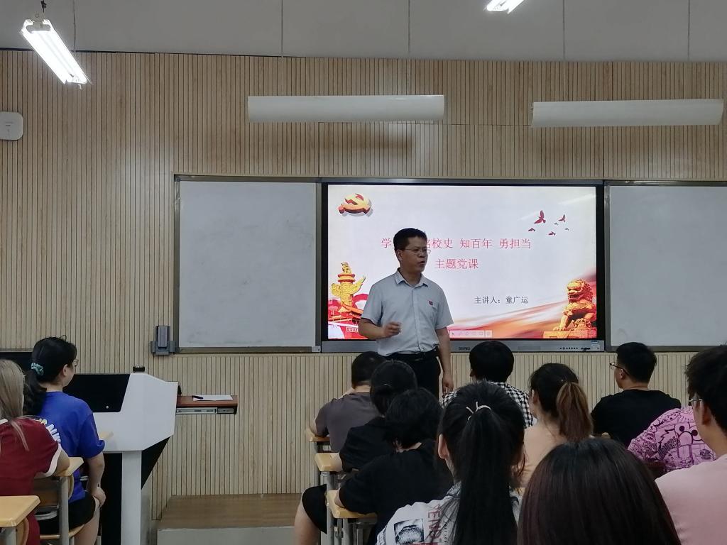 参观结束后,学院党总支书记童广运在博文楼B203教室,为全体学生讲授了“学党史铭校史 知百年 勇担当”的主题党课。童广运书记从党史学习的重大意义及发展脉络、从百年党史和校史中汲取奋进力量、牢记党员身份勇于担当使命三个方面做了全面深刻的阐述。