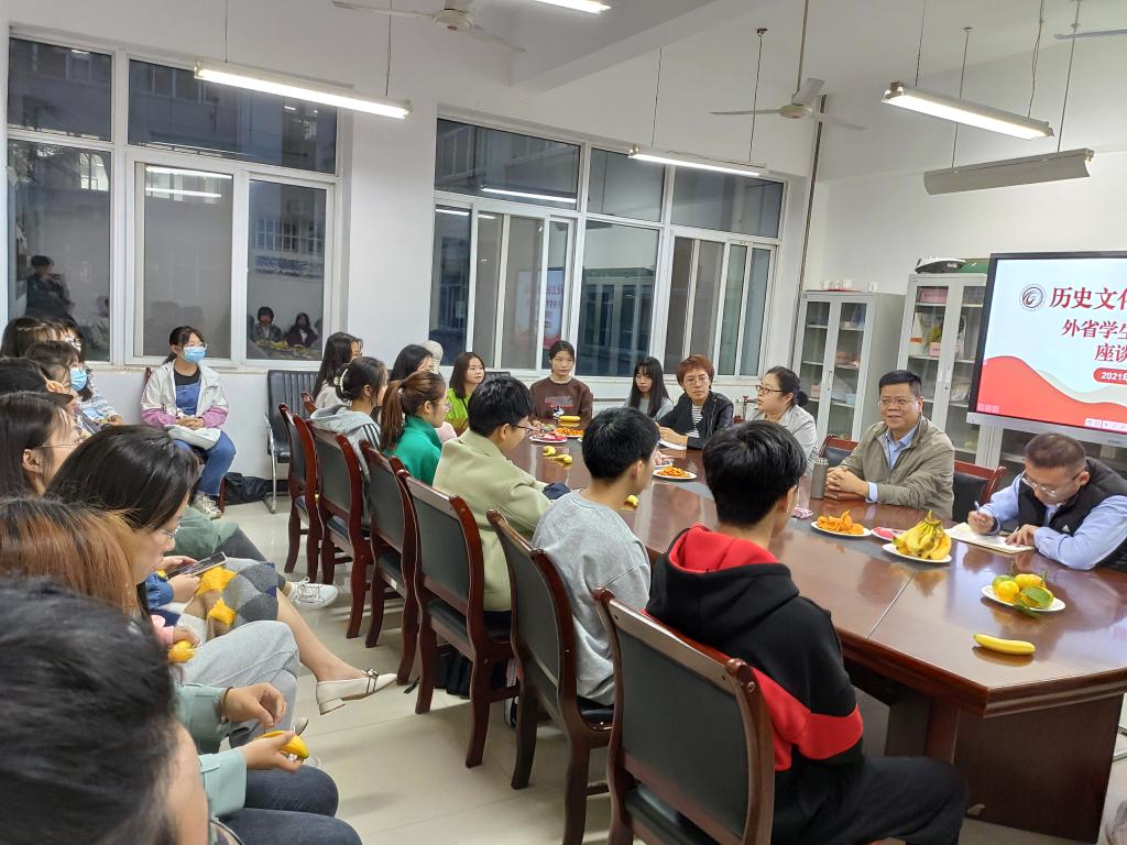 国庆节期间,为庆祝新中国成立72周年,了解学生思想、学习、生活方面的动态,促进少数民族同学之间的交流融合,bat365官网登录入口于10月4日晚在1教B202会议室召开了以“爱国情·强国志·报国行”为主题的外省籍及少数民族学生座谈慰问会。学院党委书记童广运,副书记景艳,学生党支部书记、学工办主任王黎,2021级辅导员任柏阳及2020级、2021级外省籍和少数民族同学共计30余人参加座谈会。座谈会由学院党委副书记景艳主持。