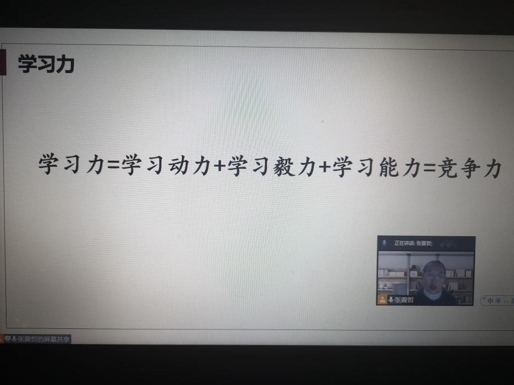 张霖哲老师以《学习力规划力职业力》为主题,分别介绍了学习力、职业力、规划力的内涵,和如何建设。并结合自身的学习经验和经历进行了简明但深刻的剖析。学习力是把知识资源转化为知识资本的能力。主要包括学习动力、学习毅力和学习能力;规划力里张老师以田忌赛马的故事,讲述了规划力在学习生涯和职业生涯的重要性;职业力是人们从事其职业的多种能力的综合,以及在学习和职业中如何培养核心的职业能力。