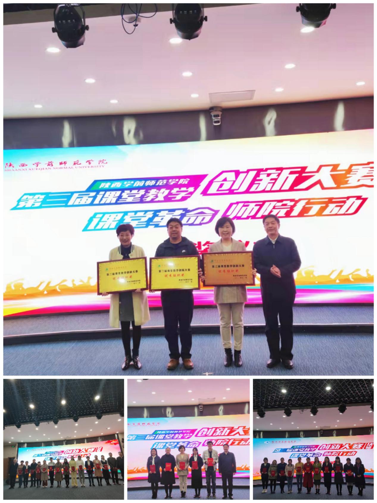 2021年11月19日下午,陕西学前师范学院第三届课堂创新大赛圆满落幕。我院选派的拜伊春、王丽梅、刘秀红三名老师经过精心准备和精彩展示,分别斩获一、二、三等奖各一项,充分体现了我院教师课堂教学创新的能力与水平,我院同时获得最佳组织奖。