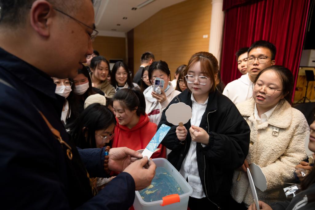 赛程过后,承办方还组织了《走进非遗·沉浸式聆听与体验》的互动活动,与会专家分享了非遗的前世今生以及西安非遗的现状与未来,台下观众们也在老师的指导下体验制作了非遗丹漆流彩扇。
